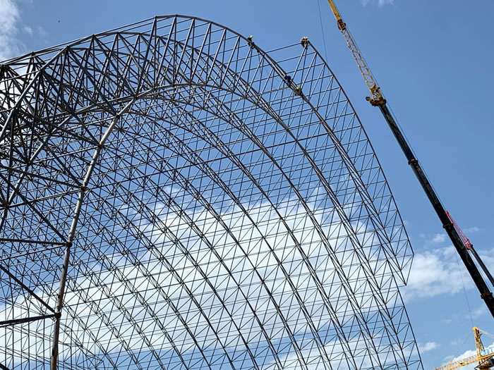 (2)网架加工前应对现场尺寸进行复测,确认无误后方可进行加工、安装;网架制作、运输、安装应遵守《空间网格结构技术规程》JGJ7-2010、《钢网架铜陵螺栓球节点》JG/T 10-2009、《钢网架铜陵螺栓球节点用高强度螺栓》 GB/T 16939-2016、《铜陵钢结构铜陵工程铜陵施工规范》 GB50755-2012、《铜陵钢结构铜陵工程铜陵施工质量验收标准》 GB50205-2020。